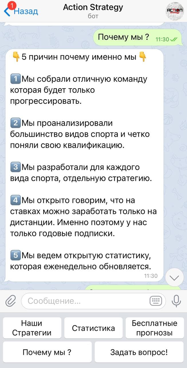 Отзывы Action Strategy ᐉ Телеграмм бот с Прогнозами на спорт