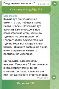 Батя Ставит — телеграмм канал, на который подписано более 5 тысяч человек.