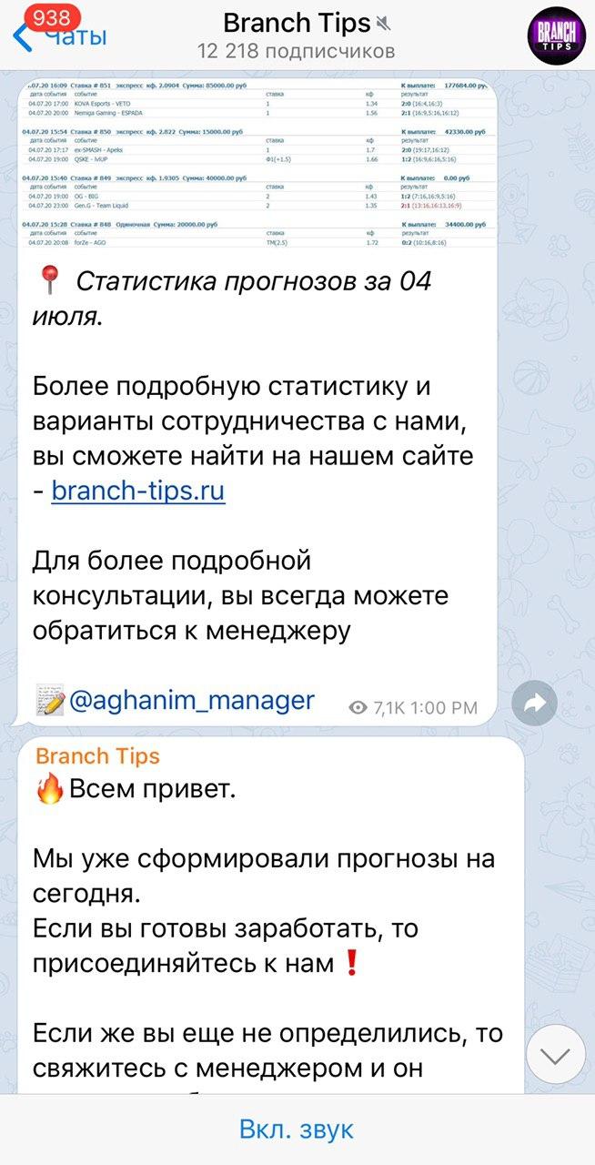 Отзывы Branch-Tips ᐉ Телеграмм канал с Прогнозами