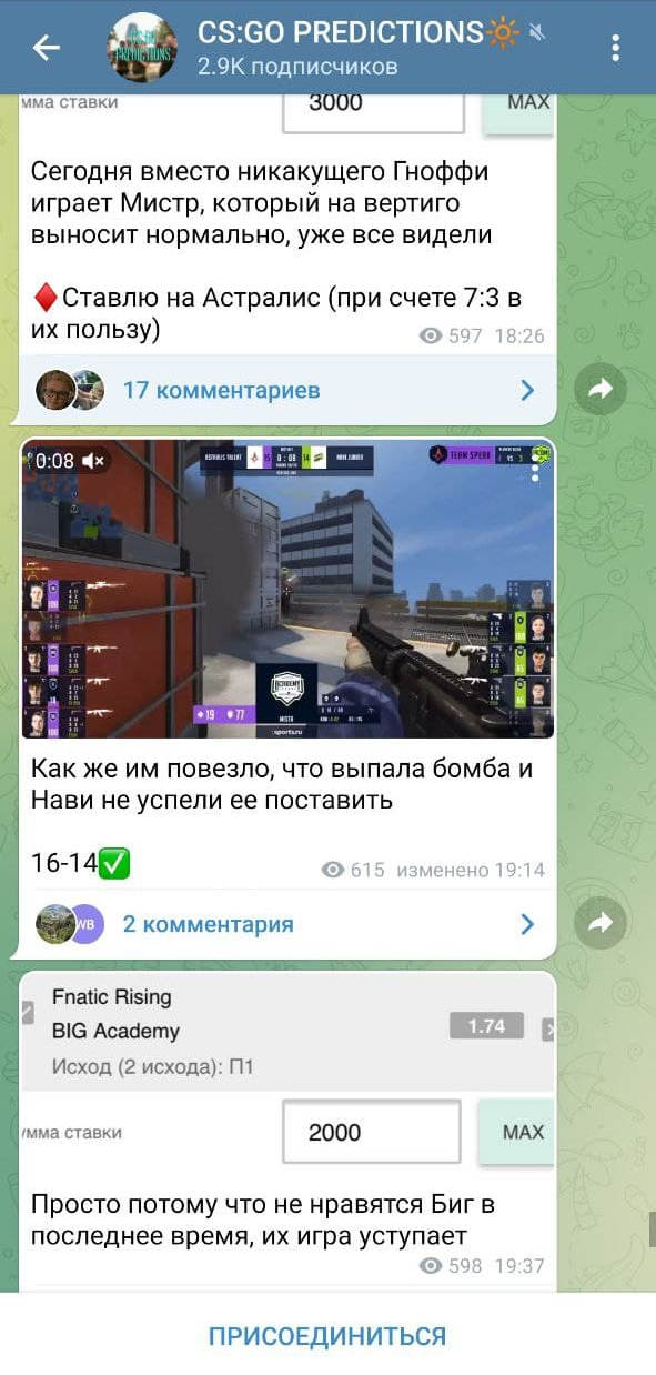 Отзывы CS:GO PREDICTIONS ᐉ Телеграмм канал с Прогнозами