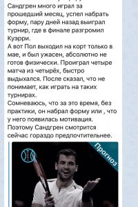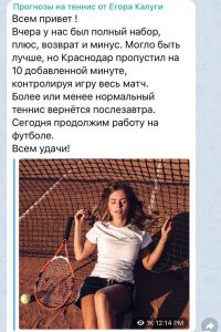 Единственное, что отмечают пользователи в телеграмме, так это то, что прогнозы на теннис от EK Sport заходят куда лучше, чем на футбол.