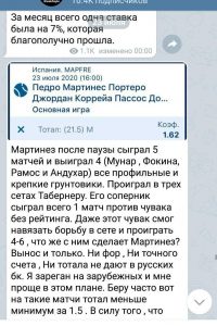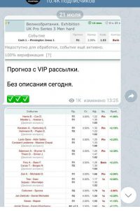 Ежедневно в Телеграм канал выкладываются 2-3 бесплатных экспресс прогноза с коэффициентами 1,5 – 1,8. - Ставки заключаются на фаворита, поэтому единичные котировки событий 1,1 – 1,4. Публикуются детальные обзоры предстоящих матчей с анализом шансов соперников на успех.