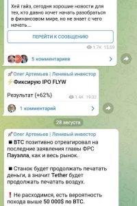 Для подписчиков, которые еще только начинают торговать, Артемьев периодически проводит обучение по инвестициям в акции и криптовалюту.