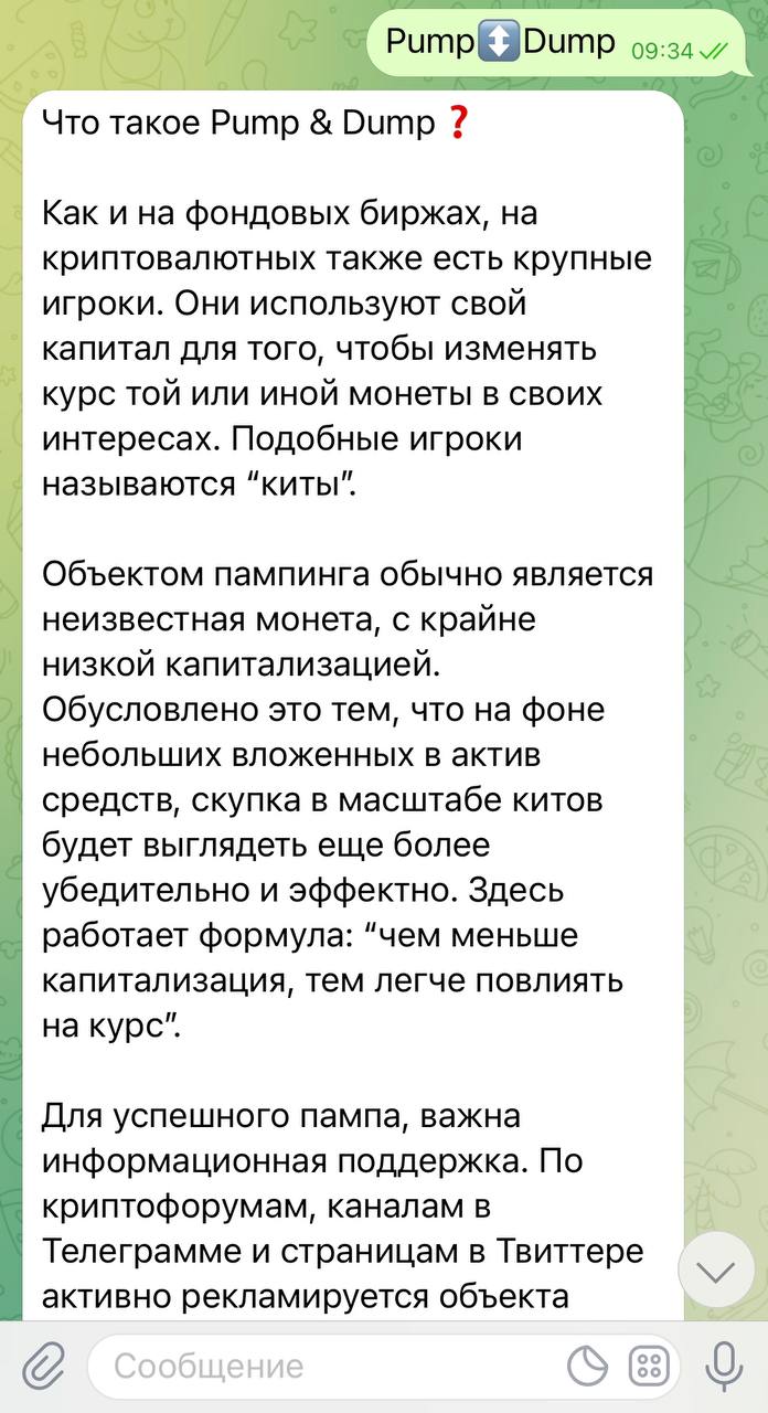- После того как они определились с монетой, они определяют потенциал пампа и на основе него решают какой именно объем средств для этого нужен. После это задают нужны параметры своему боту, который и делает остальную механическую работу.