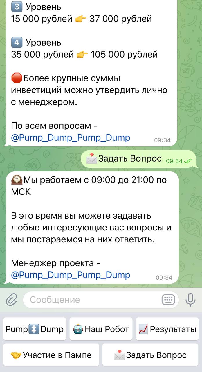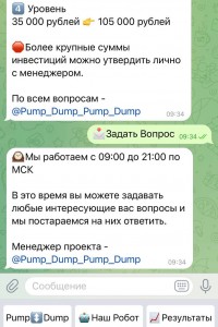 Чтобы не быть голословными, мы решили проверить работу бота ПампАп на себе. Решили начать с минимальной суммы, как делает большинство людей. Связались с менеджером, сказали что хотим инвестировать 4000 рублей.