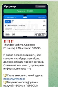 - Каппер сотрудничает с букмекером. В паблике много рекламы БК. Размещается реферальная ссылка и промокод для регистрации новых клиентов.