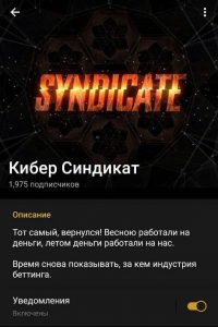 - Отзывы о Кибер Синдикате, публикуемые в Telegram канале, подтверждают удачные ставки.