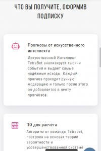 Сервис Tetrabet предлагает платные прогнозы на исходы спортивных соревнований. Капперы специализируются на футбольных матчах. Основной ресурс проекта – сайт tetrabet.com. У аналитиков также есть паблики в социальных сетях.
