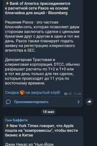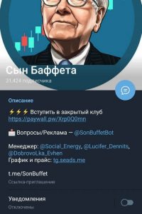 - В Telegram канале не размещается переписка с клиентами и отзывы о проекте Сын Баффета.